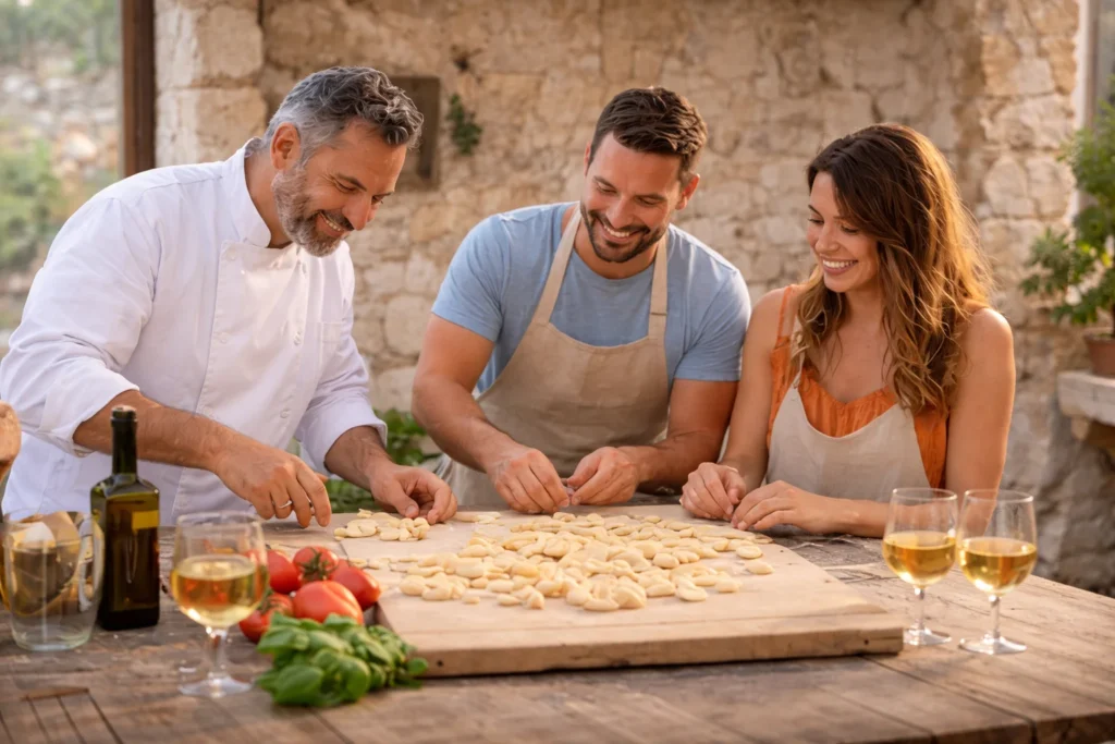 Lezioni di cucina pugliese con uno chef locale. Uscite in barca lungo la costa. Visite a frantoi e cantine con degustazione. Tour in bicicletta tra gli ulivi secolari. Escursioni nella Riserva di Torre Guaceto. Giornate nelle masserie didattiche per le famiglie.